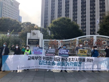 교육당국의 갑작스런 임금 환수 및 삭감 조치로 피해를 본 교사들이 교육부와 시도교육청을 상대로 집단소송을 제기하고 나섰다. 교육부가 교육공무직 ...