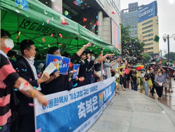 ‘코로나19 위기극복을 위한 노사정 합의안 최종안’을 두고 김명환 민주노총 위원장이 대의원대회 소집을 강행하는 가운데, 노사정 합의안을 폐기해야...