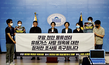 쿠팡 조리 노동자가 사망한 지 14일째, 정의당은 쿠팡의 ‘죽음의 외주화’가 노동자를 죽음으로 내몰았다고 주장했다. 쿠팡, 동원홈푸드, 아람인테...