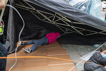 아시아나 항공기 청소노동자가 정리해고 철회를 요구하며 설치했던 천막 농성장이 4일 만에 철거됐다.