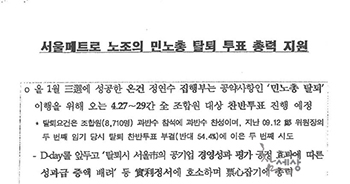 이명박 정부 당시 구 서울지하철노동조합의 민주노총 탈퇴에 청와대의 지원과 국가정보원의 ‘뒷돈’이 있었던 것으로 확인됐다.