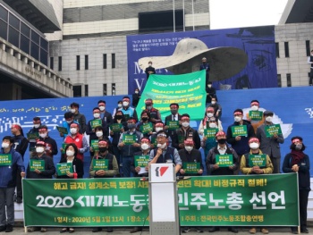 민주노총은 5월 1일 오전 서울 종로구 세종문화회관 계단 앞에서 ‘2020 메이데이 민주노총 선언 기자회견’을 열었다. 이날 기자회견엔 민주노총...