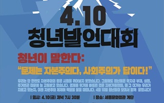 4월 10일 금요일 저녁 7시 30분 세종문화회관 계단에서 청년 발언대회 “청년이 말한다: 문제는 자본주의다, 사회주의가 답이다”가 열립니다. ...