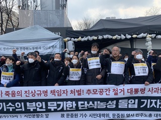 문중원 열사가 사망한지 97일째, 열사 부인인 오은주 씨가 무기한 단식농성에 돌입했다. 또한 비정규직 및 시민사회단체 5명과 문중원 열사 동료 ...