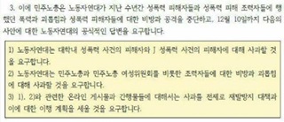 민주노총은 조만간 열릴 중앙집행위원회에서 이 문제에 대해 논의하고 노동자연대와의 연대 중단 여부를 판단할 예정이다. 이 같은 과정에서 성폭력 피...