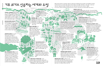 지금도 하루하루 높아지는 해수면과 태풍, 가뭄과 이상기후 등으로 전 세계는 신음하고 있다. 주요 기후위기 지역과 투쟁을 살펴본다.