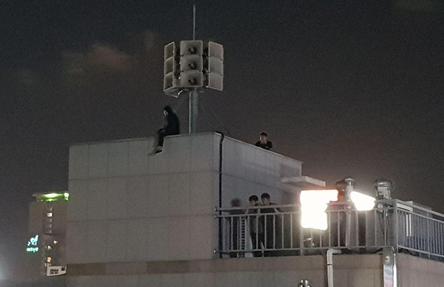 울산 가스안전점검 노동자 3명이 17일 오후 6시 30분경 ‘2인 1조’ 업무를 요구하며 울산시의회 옥상에 올랐다. 공공운수노조 울산지역본부(이...