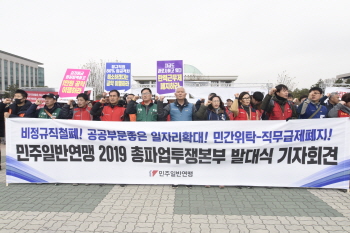 전국민주일반노동조합연맹은 전국 20만 명에 달하는 민간 위탁 노동자가 공공부문 비정규직 정규직 전환 3단계에서 배제되고 있다며 총파업에 나서겠다...