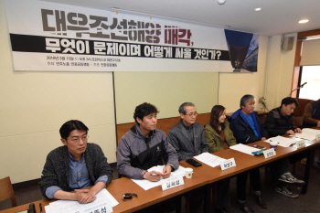 ‘청년 비정규직 고 김용균 시민대책위원회’는 12일 서울 중구 프란치스코 교육회관 2층에서 기자간담회를 열고 김용균법이 통과되고 후속으로 나온 ...