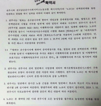 지난 25일 오후 10시경 전주시와 공공운수노조 택시지부가 교섭을 통해 잠정합의안을 이끌어냈다. 합의에 따라 전주시는 전주시 내 전액관리제(완전...