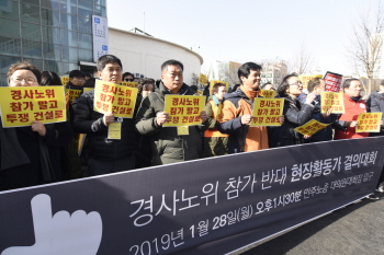 민주노총 정기 대의원대회를 앞두고 민주노총의 경제사회노동위원회 참여를 저지하자는 결의대회가 열렸다. 결의대회는 대의원대회를 앞둔 28일 오후 1...