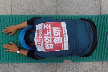 전교조 간부들이 3일 광화문 광장에서 전교조 법외노조 철회를 요구하며 3천 배에 돌입했다. 전교조 중앙집행위원 약 20여 명은 광화문 광장에서 ...