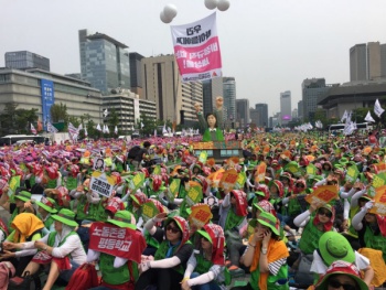 비정규직 노동자들이 전면에 나선 사회적 총파업 대회가 5만여 명이 집결한 가운데 열렸다. 참가자들은 서울 광화문 광장에서 집회를 끝내고 서울 도...