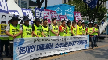 삼성전자서비스 비정규직 노동자들이 지난 12일 원청인 삼성과의 직접 교섭을 요구하며 무기한 파업에 돌입했다. 경찰이 염호석 열사 시신을 탈취한 ...