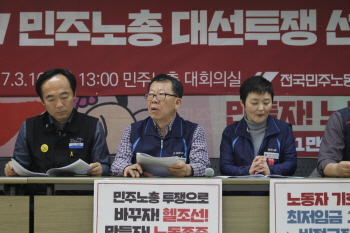 민주노총이 대선 투쟁을 선포했다. 민주노총은 대선 투쟁의 연장으로 6월 사회적 총파업도 한다. 민주노총은 16일 오후 1시 민주노총 13층에서 ...