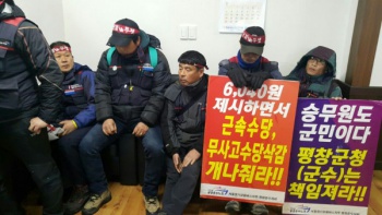 평창 버스노동자들이 조합원을 성추행하고 폭행한 경찰 진압에 대해 평창군수의 사과를 요구하고 나섰다.