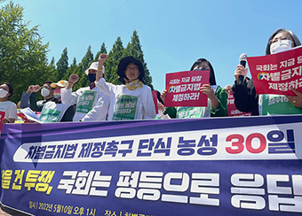 윤석열 대통령 취임식이 열린 10일 국회 밖, 차별금지법 제정을 촉구하는 단식·농성이 30일째를 맞았다. 촛불로 들어선 정권에서는 차별금지법 제...
