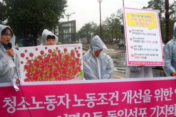 132주년 노동절을 앞두고 비정규직 노동자들이 산재 사망, 해고 등 비정규직 의제에 대한 윤석열 당선인의 해결책을 요구하며 인수위 앞에서 1박 ...