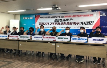 민주노총 공공운수노조 공공기관사업본부는 27일 서울 중구 민주노총 회의장에서 기자회견을 열고 인수위의 공공기관 구조조정에 대해 즉각 중단할 것을...