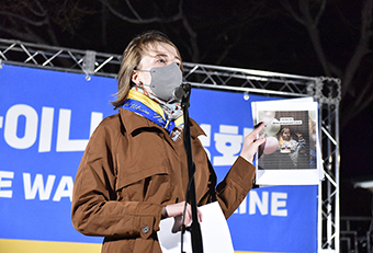 러시아의 우크라이나 침공이 이어지는 가운데, 주한 러시아 대사관 인근에 200여 명이 평화를 기원하는 촛불을 들었다. 우크라이나 시민은 “살인은...