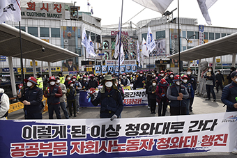 이들은 행진에서 “인건비 저가 낙찰 이제 그만” “자회사 중간착취 조장하는 예산 지침 이제 그만” 등의 구호를 외쳤다. 또한 행진 사이사이에는 ...