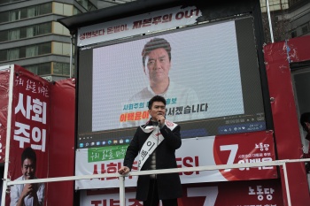차별금지법 제정을 위한 대국회 집중유세가 펼쳐진 26일, 노동당 소속 기호 7번 이백윤 사회주의 대선후보도 차별금지법 제정을 촉구하며 거리유세에...