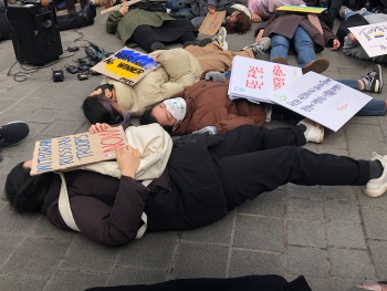 러시아의 우크라이나 침공 닷새째인 28일 오전 한국의 시민사회는 러시아의 우크라이나 침공 중단과 평화적 해결을 촉구하기 위해 주한러시아 대사관 ...