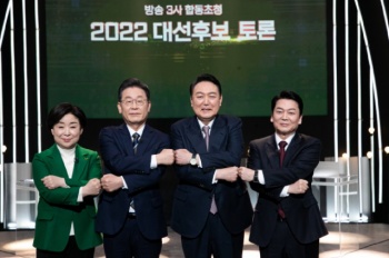 대선을 34일 앞두고 대선 후보들의 첫 TV토론이 벌어졌다. 더불어민주당 이재명, 국민의힘 윤석열, 국민의당 안철수, 정의당 심상정 등 네 후보...