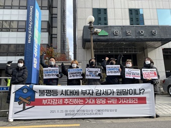여야가 부동산 세금 완화에 적극적인 가운데, 이를 규탄하는 노동·시민사회단체들의 목소리가 높아지고 있다. 불평등끝장넷은 “시대정신을 역행하는 국...