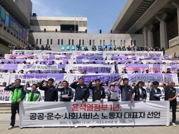 9일 오전 공공운수노조는 서울 세종문화회관 앞 계단에서 사업장 대표자 300여 명이 참석한 가운데 ‘윤석열 정부 1년, 공공-운수-사회서비스 노...