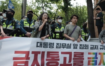랑희 활동가(인권운동공간 활)는 "윤석열 정부 1년 동안 대통령 집무실 앞 집회는 '집회신고 → 경찰 금지 통고 → 변호사 선임 뒤 법원에서 경...