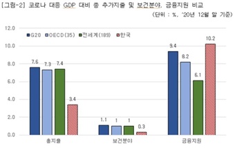 한국, 코로나 보건 지출 낮고 금융지원 높아
