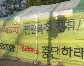 천막 농성을 시작한 GM대우 비정규직