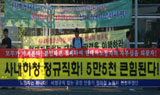 비정규직노동자들이 “대법원에서 불법파견 판정을 했는데 정규직되는 길이 이리도 어려우냐”며, 한탄하며 울고 있다. 현대자동차는 더 이상 그들의 눈...