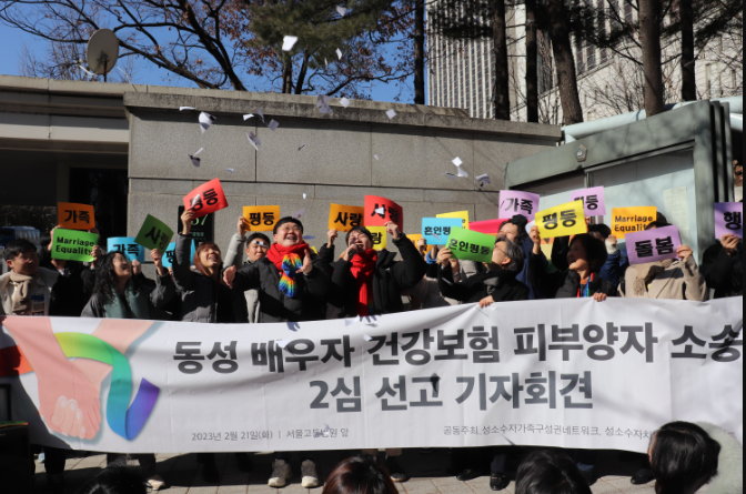 2023년 2월 21고등법원 앞에서 감격에 찬 외침이 울려 퍼졌다우리 부부가 다투고 있던 동성배우자 건강보험 피부양자 자격 인정 소송 항소심 판결이 나온 직후였다결과는 우리들의 승리였다서울고등법원 재판부는 동성 배우자의 피부양자 지위를 박탈한 국민건강보험공단의 처분을 취소한다고 판결했다.