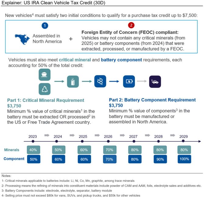 이달 초 재무부의 최종 '우려 대상 해외 기업지정이 발표되었다이는 배터리 부품과 주요 광물에 대한 미국의 중국 의존도를 줄이기 위한 것이다자동차 제조업체는 배터리 공급망에 속한 회사 중 중국 정부 관련 회사가 지분의결권 또는 이사회 지분의 25% 이상을 소유하고 있는 경우 인플레이션 감축법 세금 공제를 받을 수 없게 된다.