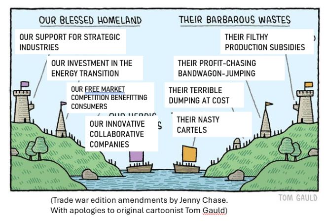 또한 국내 제조업 투자자들을 안심시키기 위한 측면도 있다. 그들은 인플레이션 감축법의 제조업체에 대한 관대함과 소비자 보조금에도 불구하고 국내산 친환경 제품을 능가하는 값싼 중국산 수입품이 범람할 것을 걱정한다. 새로운 보호 관세와 인플레이션 감축법 보조금의 조합은 미국에 기반을 둔 기업들이 친환경 기술을 따라잡을 수 있는 시간을 벌기 위한 것이다.