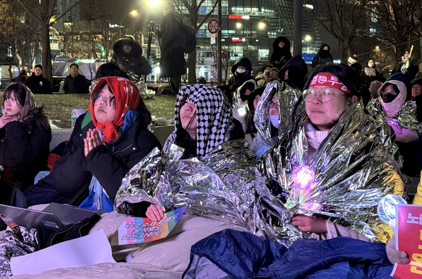 한편, 오늘 이 집회장소로 오기까지의 우여곡절이 있었다는 말씀을 드렸습니다. 주관단체인 3당과 집회준비팀이 실무와 기획으로 많이 고생하셨는데요. 오늘 한남동 상황이 심상치 않다는 우려를 전해듣고, 이 장소를 결정하는데는 또 그리 긴 시간이 걸리지는 않았습니다. 이미 한 차례는 취소되었고, 일시와 장소를 변경하였는데 다시 변경하는 자리가 가깝지도 않아서 많은 논쟁이 있을법도 하지만 우리에게는 너무나 가야할 자리였고 이미 너르게 공감하는 "모두의" 투쟁현장이었기 때문입니다. 지난 성탄절 집회와 행진에 오셨던 분들은 마지막 발언을 기억하실 것 같습니다. 계엄선포로 조선소 하청노동자들의 이야기를 전하러 서울까지 온 동지들이 거제도로 가야했던 그 날을 떠올리며 눈물지었던 네트워크 김혜진 동지의 발언이 많은 이들에게 울림을 주기도 하였음을 기억합니다.