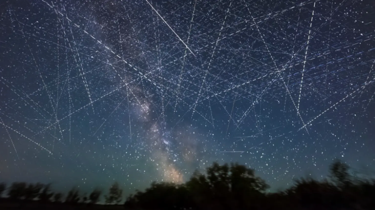 장시간 노출로 촬영한 사진에는 30분 동안 밤하늘의 한 구역을 지나가는 위성들의 수가 나타나 있다. 출처: Alan Dyer/VWPics/Universal Images Group via Getty Images