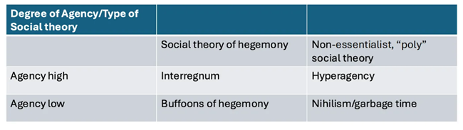 나는 지난 11월 뉴 스쿨’(The New School)에서 열린 마에더 강연(Maeder lecture)에서 과도기(interregnum)”라는 개념을 비판하며앞으로 권력과 정치적 커뮤니케이션이 어떻게 비정상적이고 통제 불가능한 형태로 전개될 가능성이 있는지를 탐구한 바 있다.