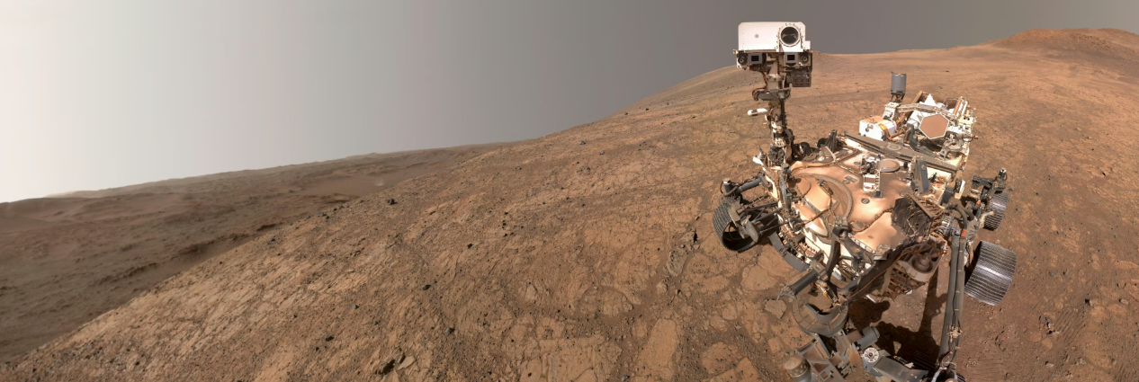 NASA의 퍼서비어런스(Perseverance) 로버는 2025년 5월 10일, 화성 탐사의 1,500번째 솔(sol, 화성일)을 기념하며 이 셀카를 촬영했다. 로버 왼쪽, 약 5킬로미터 떨어진 배경에서는 하나의 더스트 데빌(dust devil, 모래 회오리바람)이 소용돌이치고 있다. 출처: NASA/JPL-Caltech/MSSS