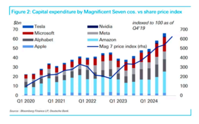 이제 투자자들은 이러한 지출이 불필요할 수 있으며, 나아가 딥시크가 AI 애플리케이션을 기존 비용의 10분의 1 수준으로 제공할 경우 미국 기업들의 수익성이 타격을 받을 것이라고 우려한다. AI에 특화된 주요 기술주 5개, 즉 반도체 제조업체 엔비디아와 이른바 ‘하이퍼스케일러'(hyperscaler)로 불리는 알파벳(Alphabet), 아마존(Amazon), 마이크로소프트(Microsoft), 메타 플랫폼스(Meta Platforms)의 주가는 단 하루 만에 총 7,500억 달러가 증발했다. 또한, 딥시크는 데이터 센터 기업뿐만 아니라 대규모 확장을 통해 수익을 기대했던 전력 및 수도 운영업체들의 수익에도 위협이 되고 있다. 현재 미국 증시의 상승세는 ‘매그니피센트 세븐'(Magnificent Seven)에 집중되어 있다.