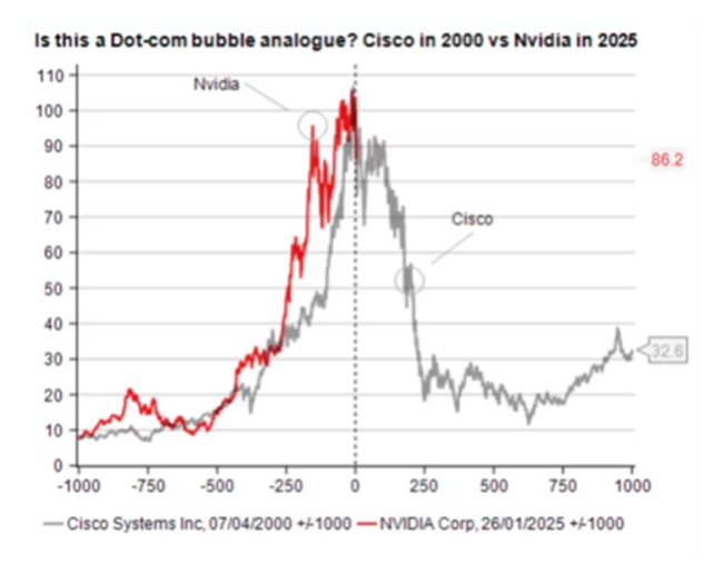 그렇다면 딥시크가 미국 기술주에 형성된 거대한 주식시장 거품을 터뜨린 것일까? 억만장자 투자자 레이 달리오(Ray Dalio)는 그렇다고 봤다. 그는 <파이낸셜 타임스>와의 인터뷰에서 “가격이 매우 높은 수준까지 올라간 동시에 금리 위험이 존재하며, 이 두 가지 요인이 결합하면 거품이 터질 수 있다”고 말했다. 달리오는 “현재 시장의 순환 주기는 1998년에서 1999년 사이와 매우 유사하다”고 언급했다. “다시 말해, 확실히 세계를 변화시키고 성공할 대규모 신기술이 등장했지만, 일부 사람들은 그것이 곧 투자의 성공을 의미한다고 착각하고 있다.”