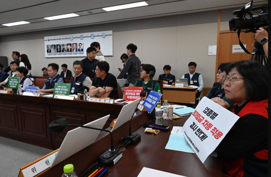 최저임금위원회 1차 전원회의 현장 (2024/05/21) 출처 : 노동과 세계, 촬영 : 백승호 (필자 제공)