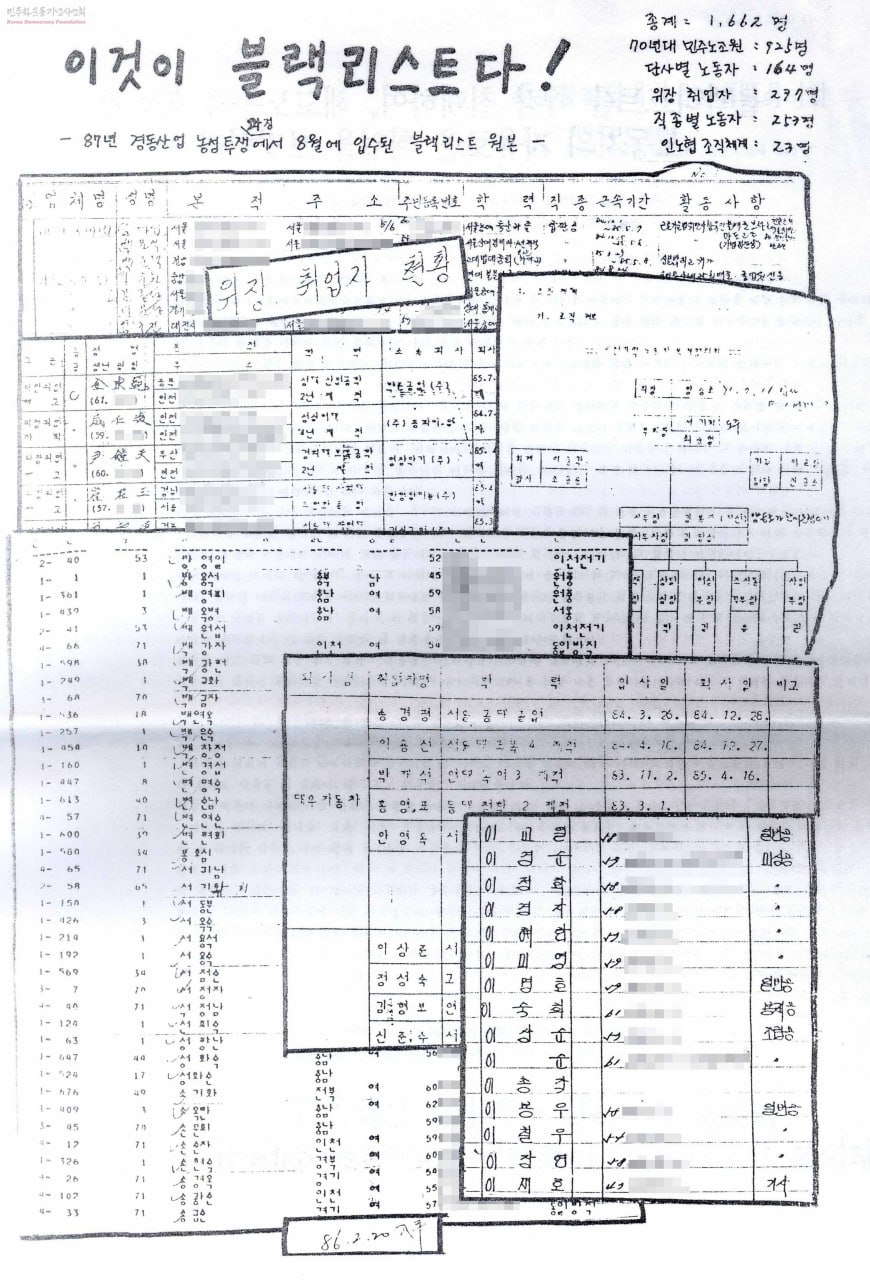 1980년대의 블랙리스트 역시 규모가 확대됐다. 1987년 8월 20일 경동산업이 파업 농성하는 과정에 생산사무실 노무 담당 책상에서 6묶음의 블랙리스트를 발견했다.