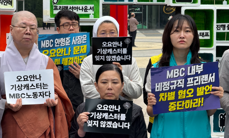 문제는 MBC의 태도였다. MBC는 본사 건물 내부에 유족 없이 분향소를 설치했고, 장연미 씨가 단식에 돌입한 이후에도 아무런 연락을 하지 않았다. 그러던 중, 고인의 사망 1주기였던 15일에 또 다른 문제가 발생했다. MBC는 “프리랜서 기상캐스터 제도를 폐지하고, 기상기후 전문가 제도를 도입해 정규직으로 채용하겠다”는 내용의 보도자료를 배포했다. 이는 농성 중이던 이들에게 충격을 안긴 발표였다. 기상캐스터 정규직화 등 처우 개선을 요구했더니, MBC의 답은 기존 기상캐스터들의 일자리마저 박탈하겠다고 밝힌 것이나 다름없었기 때문이다. 더구나 고 오요안나 씨는 MBC가 제시한 기상기후 전문가 공채에 지원할 수 있는 요건에도 해당하지 않았다.
