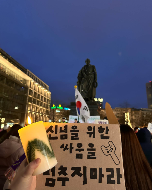마지막으로, 독일 내 한인 시위를 하러 간다는 말에 교수가 했던 질문과 그에 대한 나의 답으로 글을 마무리하고자 한다. 교수는 독일 내, 한인 시위를 통해서 우리가 달성하고자 하는 목적이나 목표가 있냐고 물었다. 그리고 그 시위에 참여하는 것이 개인적인 측면에서 어떤 가치를 가지는지 물었다. 사실 독일 내에서 하는 이 시위는 특정 목적성을 가지기 힘들다. 독일 내의 변화를 촉구하는 시위가 아니기 때문이다. 그러나 우리가 이런 시위를 열고 참여하는 이유는, 첫 번째로 우리의 연대를 보여주기 위함이다. 한국에 있는 한국인들에게 우리 모두가 함께하고 있다는 것을 보여주는 것만으로도 의미가 있다. 두 번째, 이 시대의 운동은 이토록 다양한 방식으로 진행되고 기록할 수 있다는 점을 보여주기 위함이다. 한국을 틀어막는다고 끝나지 않는다. 세계는 다양한 플랫폼과 미디어 콘텐츠를 통해 연결되어 있고 그렇게 연결된 우리는 어디에나 존재한다는 것을 기억해야 할 것이다.