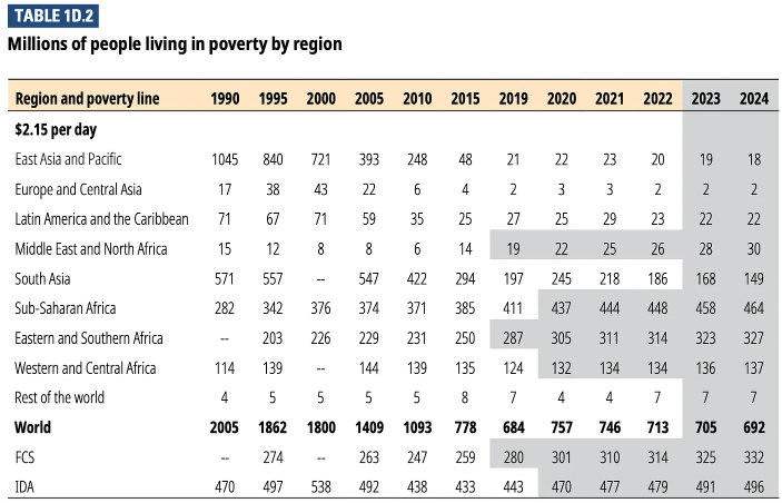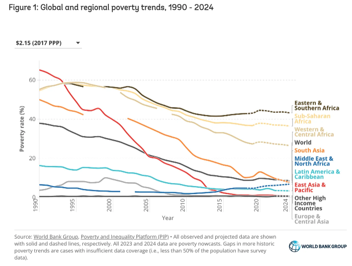 1990년 동아시아 및 태평양 지역의 빈곤율은 사하라 이남 아프리카보다 높았고남아시아의 빈곤율은 사하라 이남 아프리카와 비슷했다.