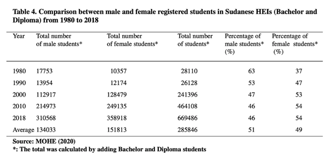 출처베시르, M. M., N. E. 아흐메드, M. E. 모하메드. "수단의 고등 교육과 과학 연구현재 상황과 미래 방향." 아프리카 농촌 개발 저널(African Journal of Rural Development) 5.1 (2020): 115-146.