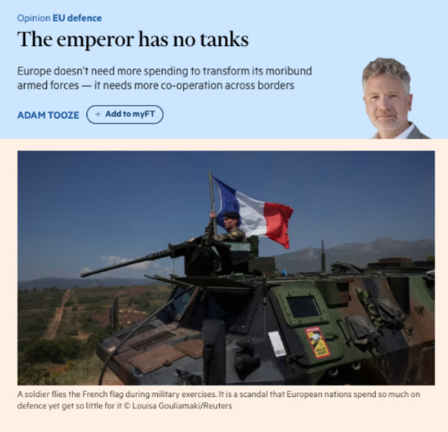 내 최근 유럽 방위 정책에 관한 오피니언 칼럼 초안을 본 <파이낸셜타임스편집자들의 반응은 지극히 당연한 것이었다정말로 사실일 수 있을까?